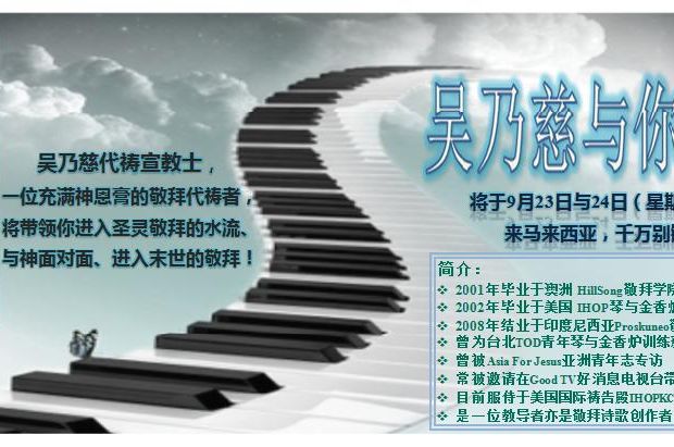 欲知更多详情或是报名参加,请联络Yuki姐妹(012-2231472)。愿神祝福您!